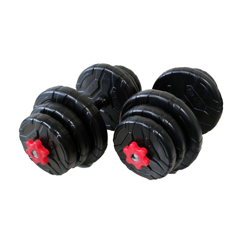 دمبل مدل DVP-10-mix1وزن 10 کیلوگرمی بسته دو عددی شامل یک جفت دمبل 10 کیلویی (مجموعا 20 کیلو) است که به طور ویژه برای استفاده خانگی طراحی و ساخته شده است مهمترین ویژگی این محصول، ارگونومیک بودن و طراحی چشمنواز آن است؛ روکش وزنههای این دمبل از پلاستیک بوده که این کار علاوه بر زیبایی، مانع آسیب دیدن وزنهها و آسیبرساندن آنها به محیط اطراف میشود، دستههای این دمبل از جنس پلاستیک بوده و طراحی و مواد آن بهگونهای است که مانع آسیب رسیدن به کف دستها شود. دمبل متغیر 2 تا 10 کیلوگرم شامل 2 صفحه 1 کیلوگرمی، 2 صفحه 1.5 کیلوگرمی و 2 صفحه 2.5 کیلوگرمی بوده و در وزن های 2 و 3 و 5 و 7و 8 و 10 کیلوگرم قابل استفاده است. یعنی با خرید این دمبل در عمل 6 دمبل در اختیار دارید. یکی از برتریهای این دمبل نسبت به نمونههای مشابه در بازار، جنس نانوکامپوزیت وزنههاست. این ماده مدرن و پیشرفته دارای مقاومتی بالاتر از چدن است اما مشکلات چدن مانند شکنندگی، زنگزدگی، آسیبرسانی و ... را ندارد. همین موضوع باعث شده که دمبلها گزینهای ایدهآل برای مصارف خانگی به طور خلاصه میتوان مزایای کلیدی این محصول را اینگونه عنوان کرد: - ظاهری بسیار زیبا و مدرن - تولید شده از مواد درجه یک و بادوام - امکان استفاده در چند وزن مختلف - امکان اضافه کردن وزنه دارد