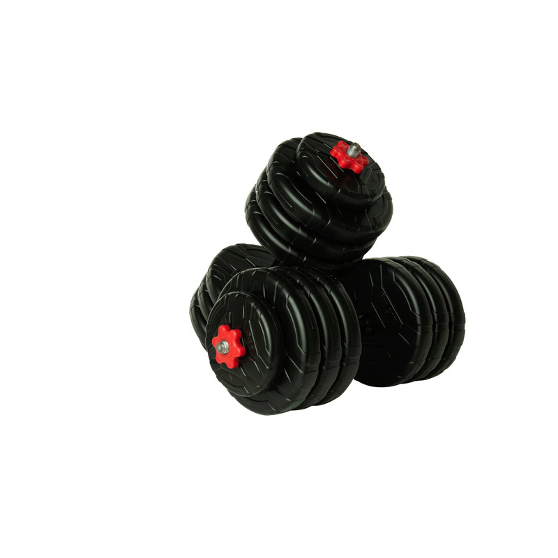دمبل مدل DVP-17-mix1 وزن 17 کیلوگرمی بسته دو عددی شامل یک جفت دمبل 17 کیلویی (مجموعا 34 کیلو) است که به طور ویژه برای استفاده خانگی طراحی و ساخته شده است مهمترین ویژگی این محصول، ارگونومیک بودن و طراحی چشمنواز آن است؛ روکش وزنههای این دمبل از پلاستیک بوده که این کار علاوه بر زیبایی، مانع آسیب دیدن وزنهها و آسیبرساندن آنها به محیط اطراف میشود، دستههای این دمبل از جنس پلاستیک بوده و طراحی و مواد آن بهگونهای است که مانع آسیب رسیدن به کف دستها شود. دمبل متغیر 2 تا 17 کیلوگرم شامل 6 صفحه 2.5 کیلوگرمی و 2 صفحه 1 کیلوگرمی بوده و در وزن های 2 و 5 و 7 و 8 و10 و 12 و 15 و 17 کیلوگرم قابل استفاده است. یعنی با خرید این دمبل در عمل 8 دمبل در اختیار دارید. یکی از برتریهای این دمبل نسبت به نمونههای مشابه در بازار، جنس نانوکامپوزیت وزنههاست. این ماده مدرن و پیشرفته دارای مقاومتی بالاتر از چدن است اما مشکلات چدن مانند شکنندگی، زنگزدگی، آسیبرسانی و ... را ندارد. همین موضوع باعث شده که دمبلها گزینهای ایدهآل برای مصارف خانگی به طور خلاصه میتوان مزایای کلیدی این محصول را اینگونه عنوان کرد: - ظاهری بسیار زیبا و مدرن - تولید شده از مواد درجه یک و بادوام - امکان استفاده در چند وزن مختلف - امکان اضافه کردن وزنه دارد