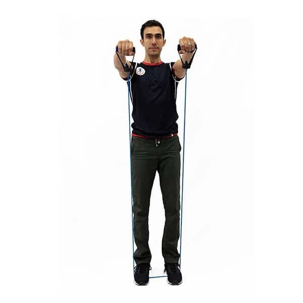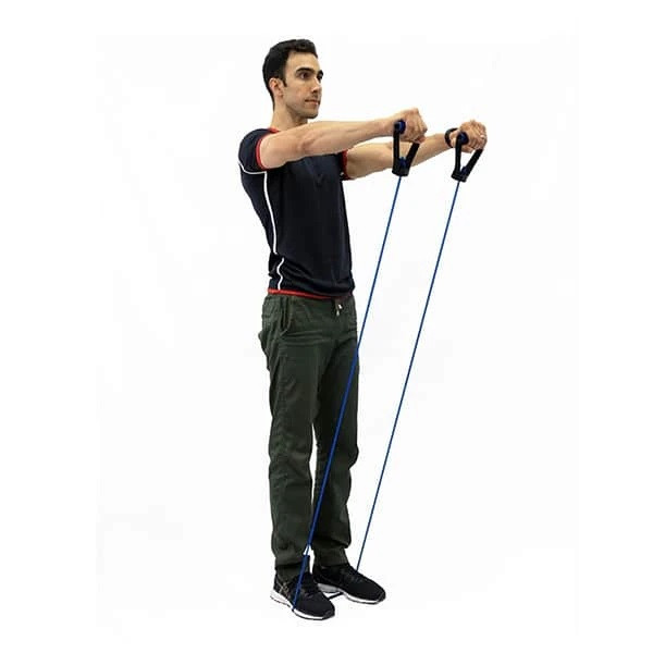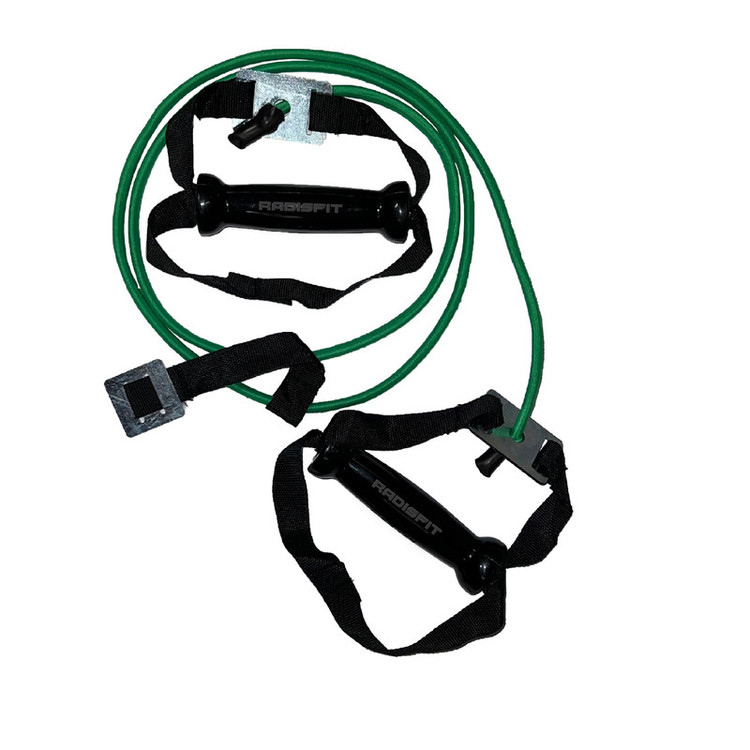 کش ورزشی همه کاره مدل All in One رادیس فیت با طول حدوداً 2 متر از جنس کش رشته ای مقاوم بوده و یکی از انواع کش های ورزشی در بین انواع کشهای این شرکت است . لازم به ذکر است قدرت کش ها بر حسب رنگ آنها متفاوت هستند که به ترتیب رنگ قرمز ، نارنجی ، مشکی ، آبی و سبز از قدرت زیاد به قدرت کم می باشد . این کش برای انجام انواع تمرینهایی که نیاز به کش دارند مناسب بوده و قابلیت کشسانی تا دو برابر طول عادیاش را دارد . این کش ورزشی دارای یک قلاب از جنس تسمه برزنتی بسیار محکم بوده که با انداختن و فیکس کردن آن پشت در، میتوان دامنه حرکات را بسیار گسترش داد و حرکات مختلفی را با آن انجام داد . این محصول دارای جای پا نیز هست که به راحتی می توان حرکات پا را نیز با آن انجام داد .