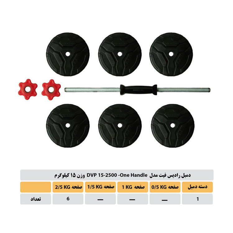 دمبل گرد قابل تنظیم وزن 15 کیلوگرم رادیس فیت مدل Dvp 15-2500-one handle